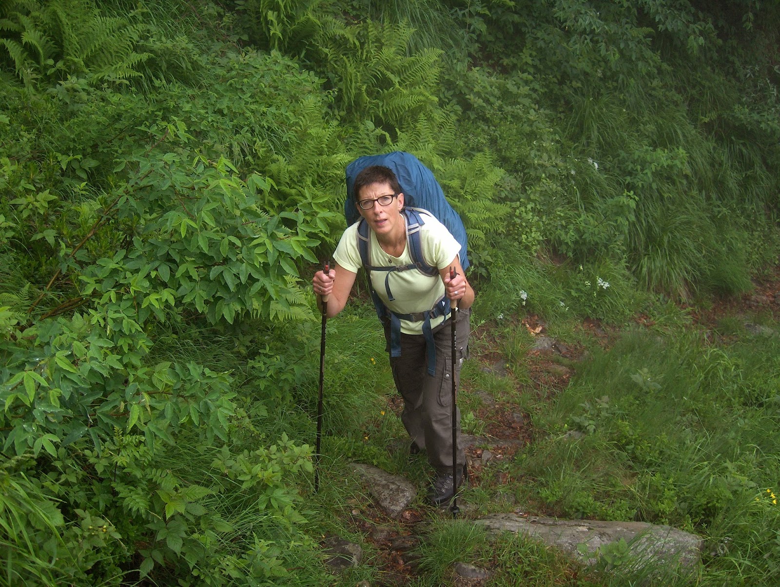 kortere route! Het uitzicht bij de hut werd verstoord door mist en regen met